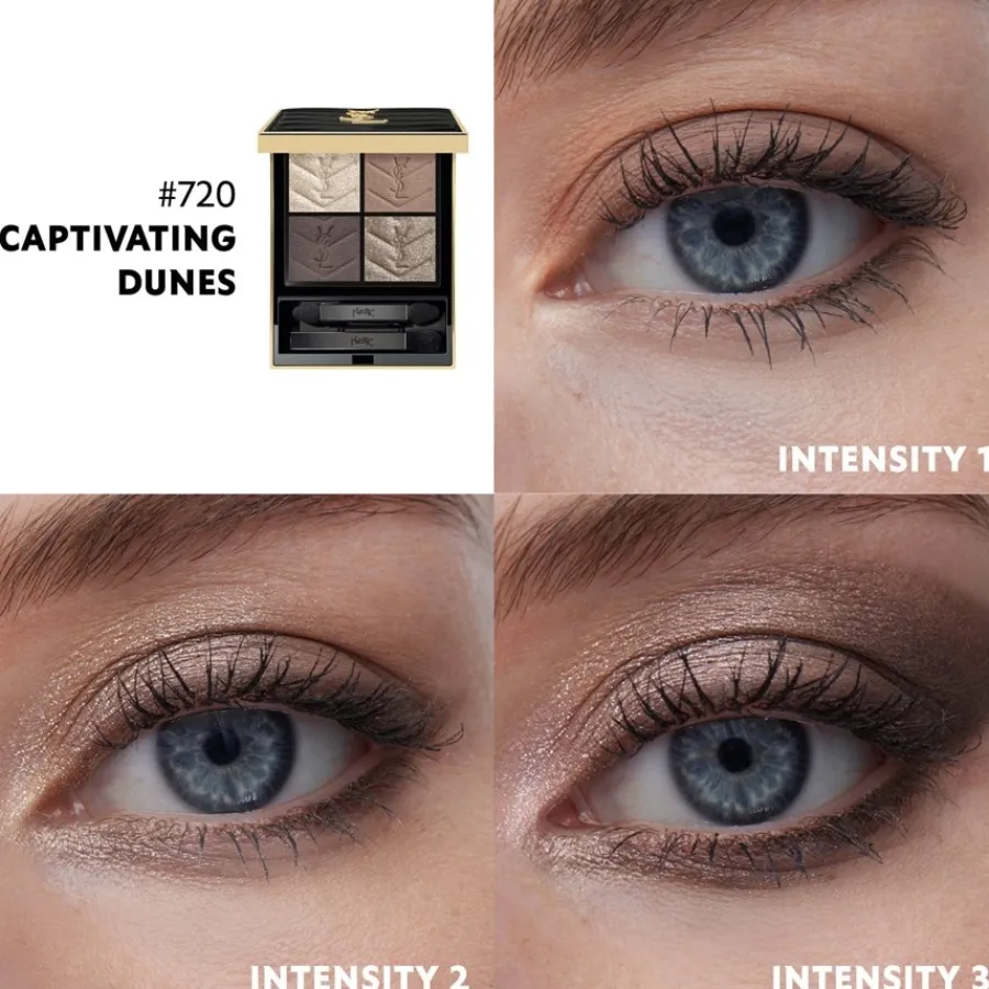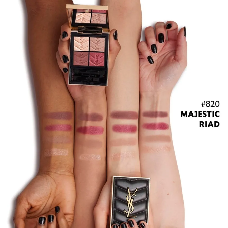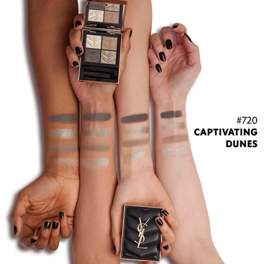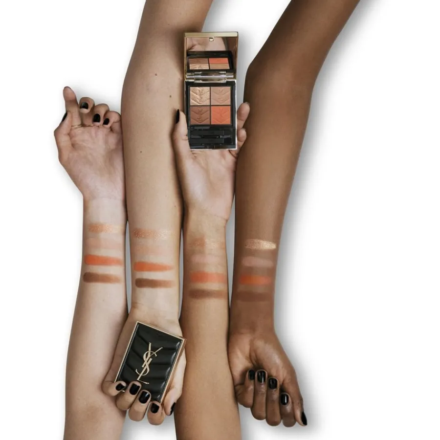 Jede der beiden Varianten der Couture Mini Clutch besteht aus vier verschiedenen Farben für den Lidschatten der Augen. Die Produkte des Herstellers YSL Beauty sind mit hochwertigen Ölen angereichert. Zudem besteht die Formel aus Kaffeesamenöl, Süßmandelöl und Feigen-Kaktus-Extrakt. Die Farben der Reihe sind auf der Haut angenehm zu tragen. Die N°5 Medina Glow setzt dabei auf satte Nude-Farben, die den Hauttönen des menschlichen Körpers ähnlich sind, während die Farben der N°6 Spontini Lilies heller und feiner erscheinen. Eine hochwertige Produktreihe für das Make-up der Augen – die Couture Mini Clutch von Yves Saint Laurent.