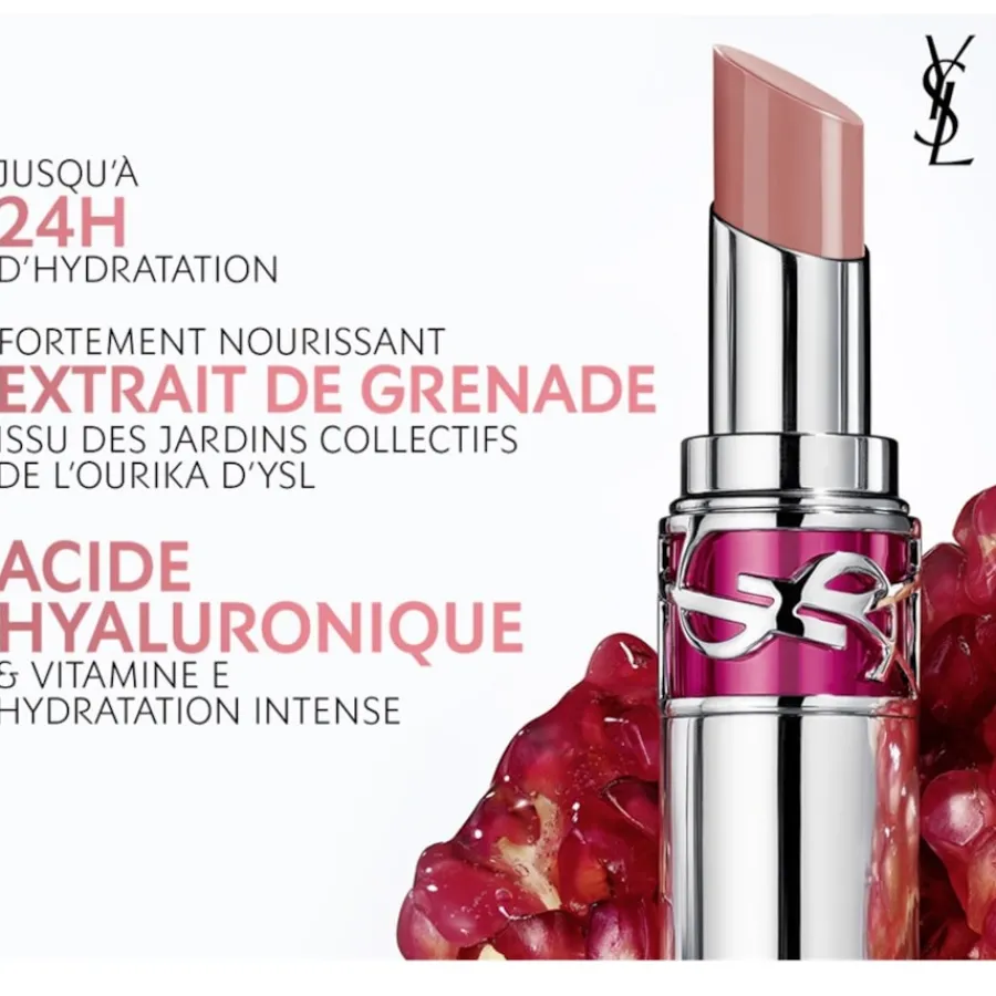 Neben den Farbpigmenten für eine ultrakräftige Farbe enthält der CANDY GLAZE – ultraglänzender Lipgloss-Stick für bis zu 24H Feuchtigkeit eine feuchtigkeitsspendende Formel mit ausgewählten Inhaltsstoffen. Neben Hyaluronsäure und Vitamin E sorgen auch kaltgepresstes Mango-Öl und Granatapfel-Extrakt aus den YSL Ourika Community Gardens für gepflegte Lippen, die direkt voller und praller erscheinen.