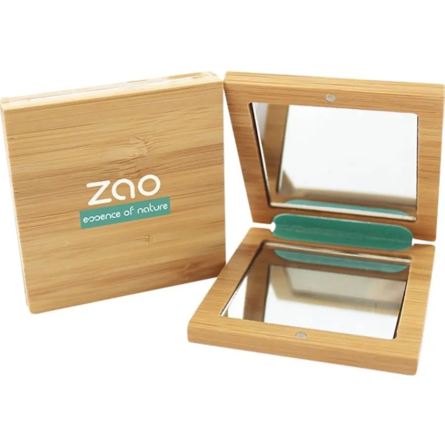 Als Verschluss dient daher ein innenliegender Magnetkopf, der die Box nahtlos schließt. Dadurch und weil er nur 7.5 x 7.5 cm groß ist, passt der Zao Bamboo Mirror perfekt in jede Tasche, auf Reisen, unterwegs im Beruf oder auch abends im Club. Auf der Vorderseite ist der Labelname und das Motto „essence of nature“ zu lesen. Und weil ausschließlich bio-zertifizierter Bambus für das Zubehör verwendet wird, sieht man natürlich die feine Maserung des hellen Holzes. Sie ist immer wieder anders und macht so aus jedem Zao Bamboo Mirror ein kleines Unikat.