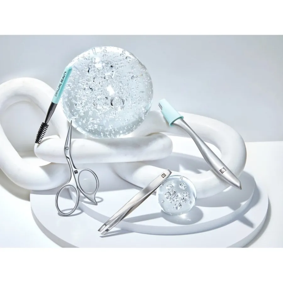 Die Premium Augenbrauenschere ist ideal zum präzisen Kürzen und Formen der Augenbrauenhaare. Das abgewinkelte Design der Schere und die verlängerten Scherenaugen ermöglichen eine sichere Handhabung in der Nähe des Auges. Mit den hauchdünnen Klingen können die Augenbrauen exakt und gleichmäßig in die gewünschte Form gebracht werden. Um optimale Ergebnisse zu erzielen, kämmen Sie die Augenbrauen zuerst in die gewünschte Form und schneiden dann vorsichtig einzelne Haare, die zu lang sind.