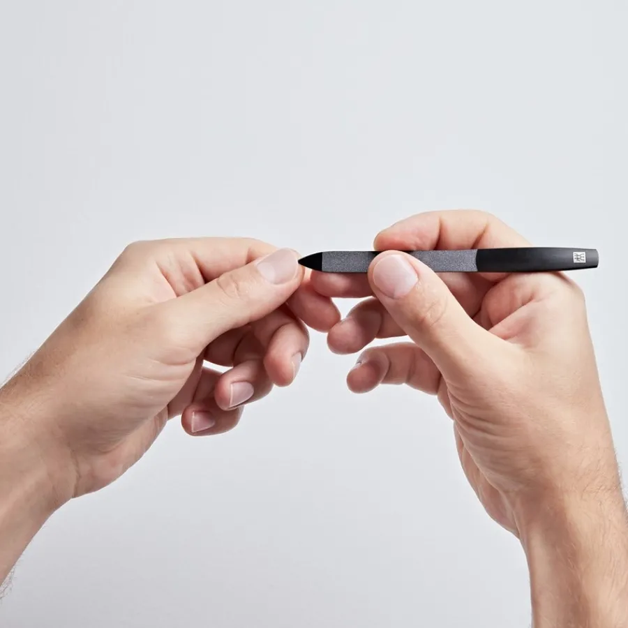 Nagelfeilen für mehr Glanz spezialisieren sich auf die Nageloberfläche. Zuerst entfernen Sie mögliche Rillen mit der gröbsten Seite. Anschließend entfernen Sie alte Zellen und Staub mit der feineren Seite, bis die Nägel strahlend glänzen.