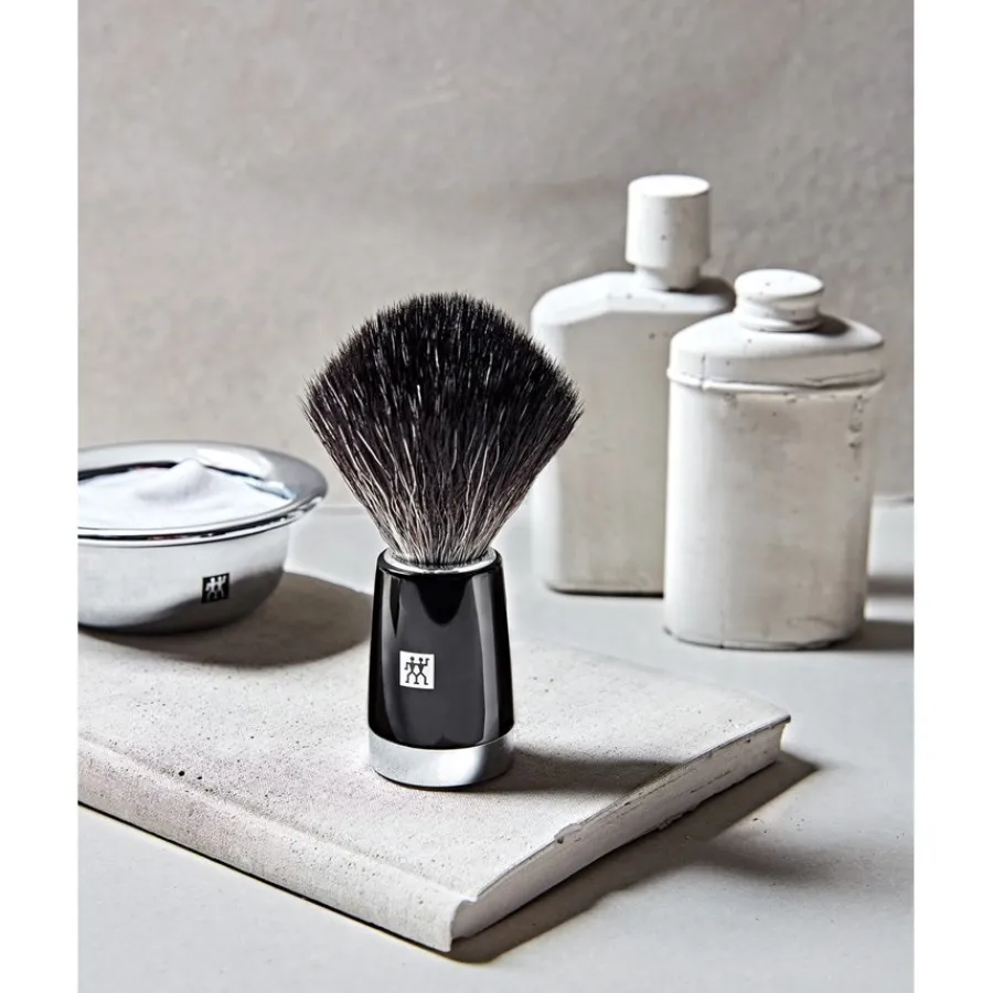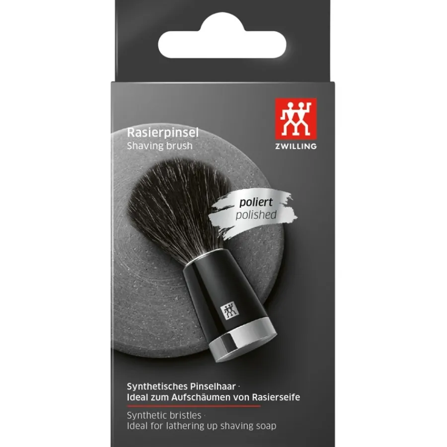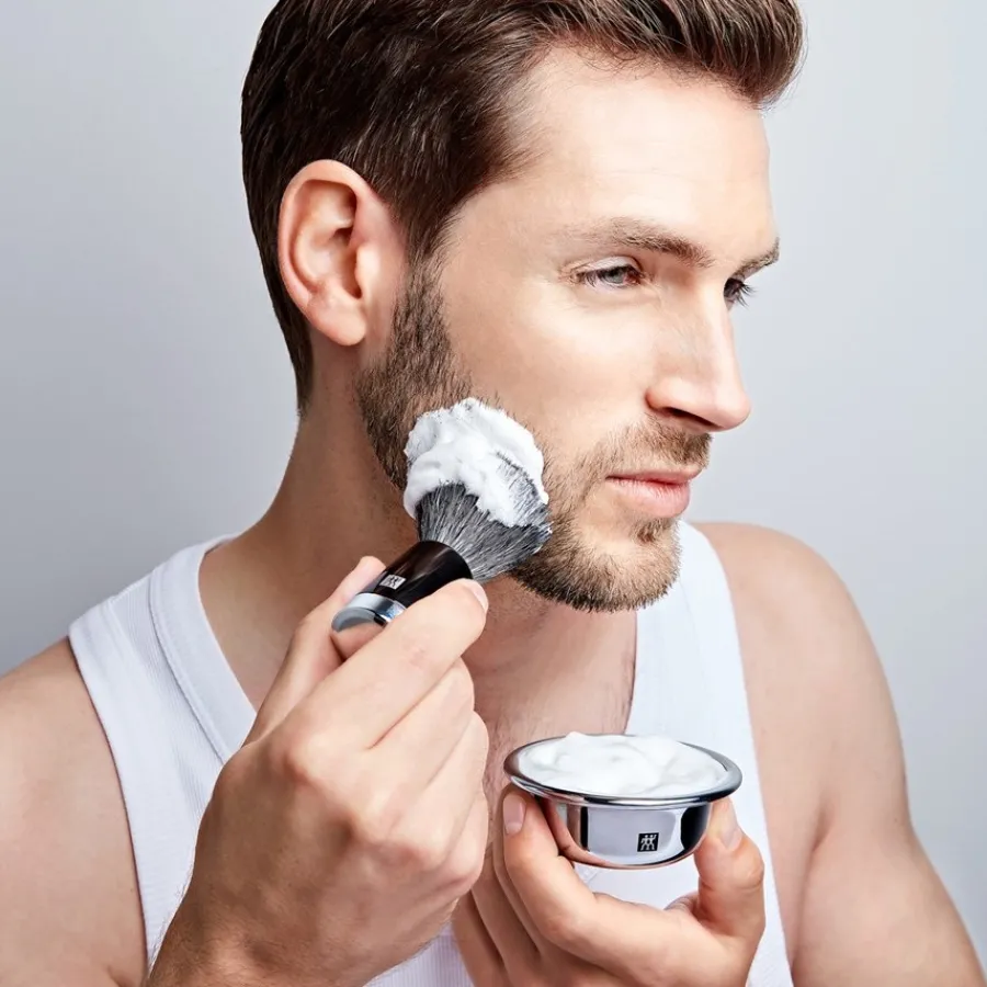 Halten Sie den Rasierpinsel kurz unter warmes Wasser und schütteln Sie ihn dann kräftig aus. Da der ZWILLING Rasierpinsel mit Kunsthaar ausgestattet ist, muss er nicht in Wasser eingeweicht werden, bevor Sie mit dem Aufschäumen beginnen.