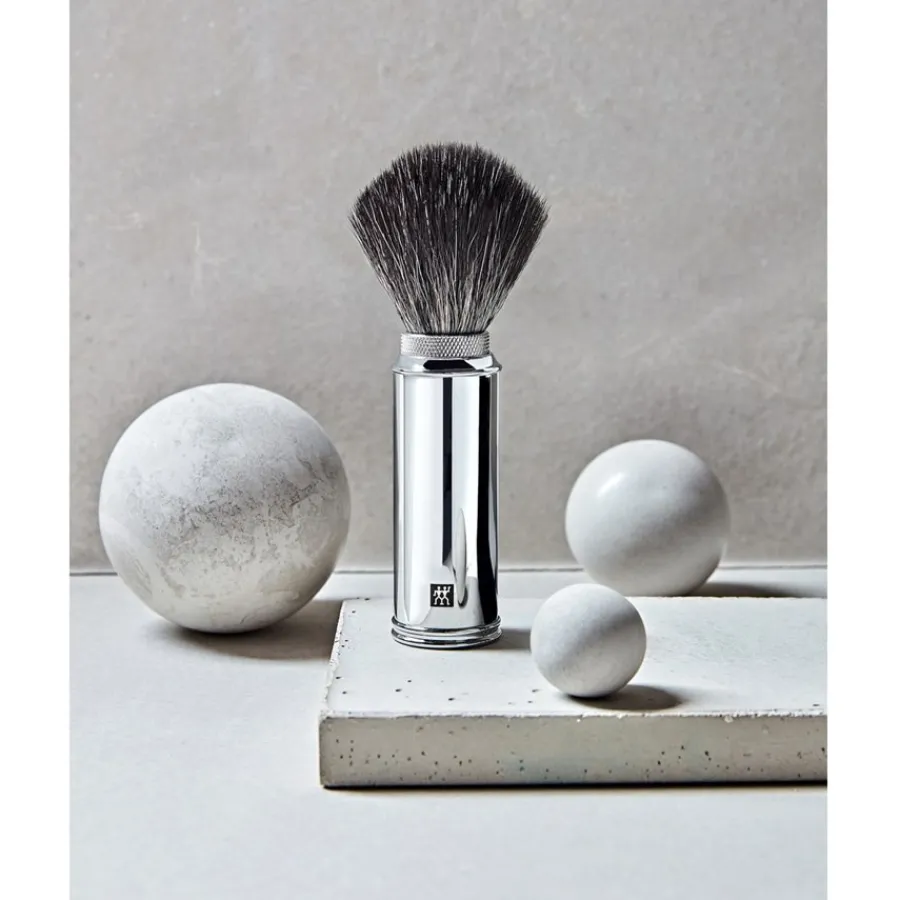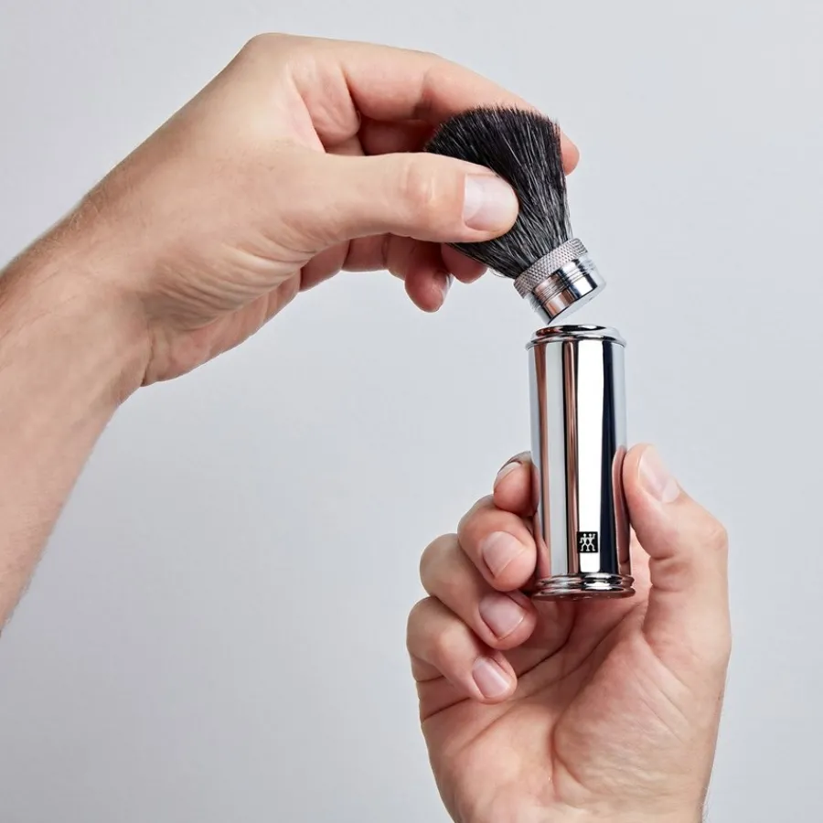 – Den Rasierpinsel kurz unter warmes Wasser halten und danach einmal kräftig ausschütteln.